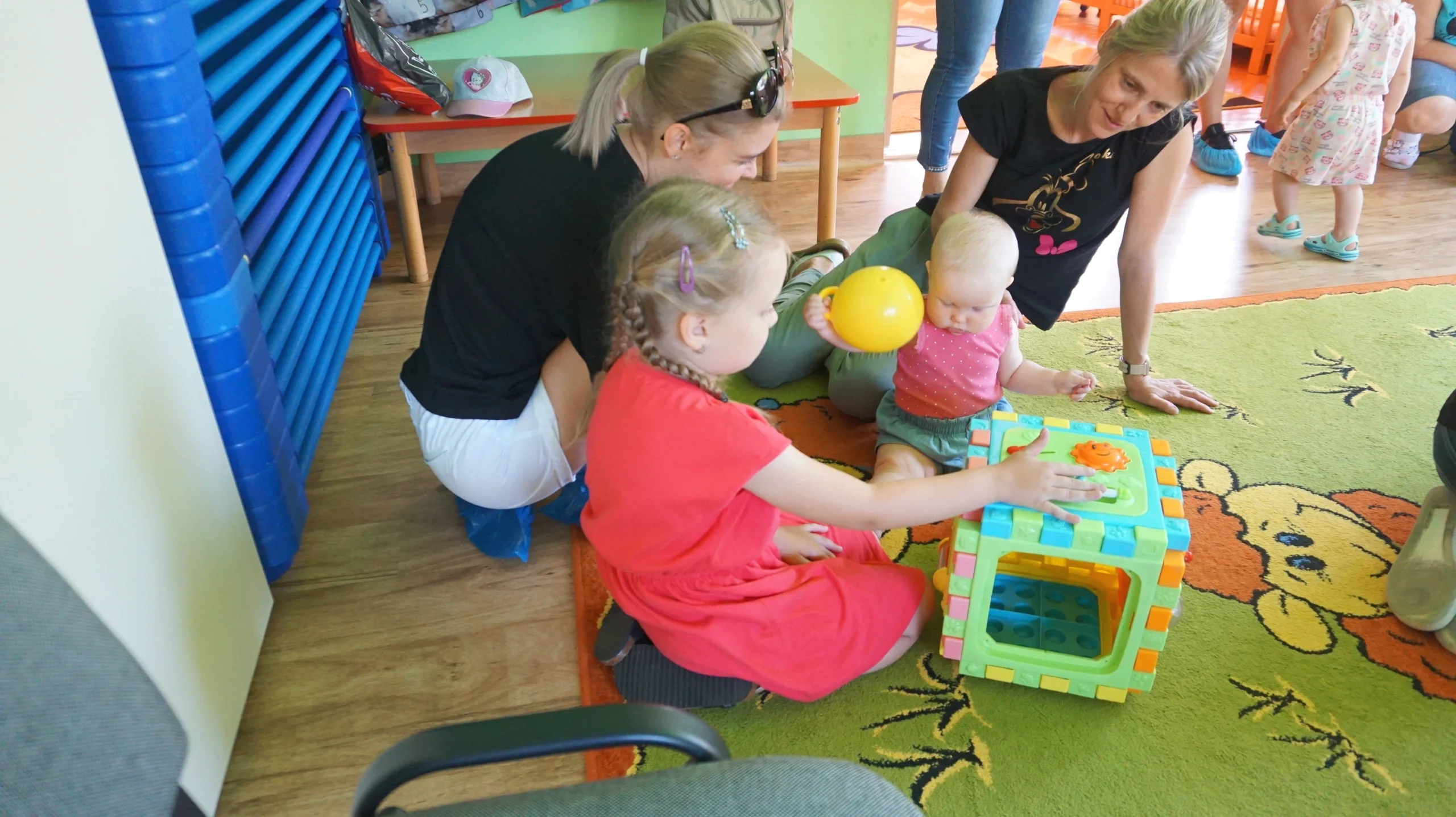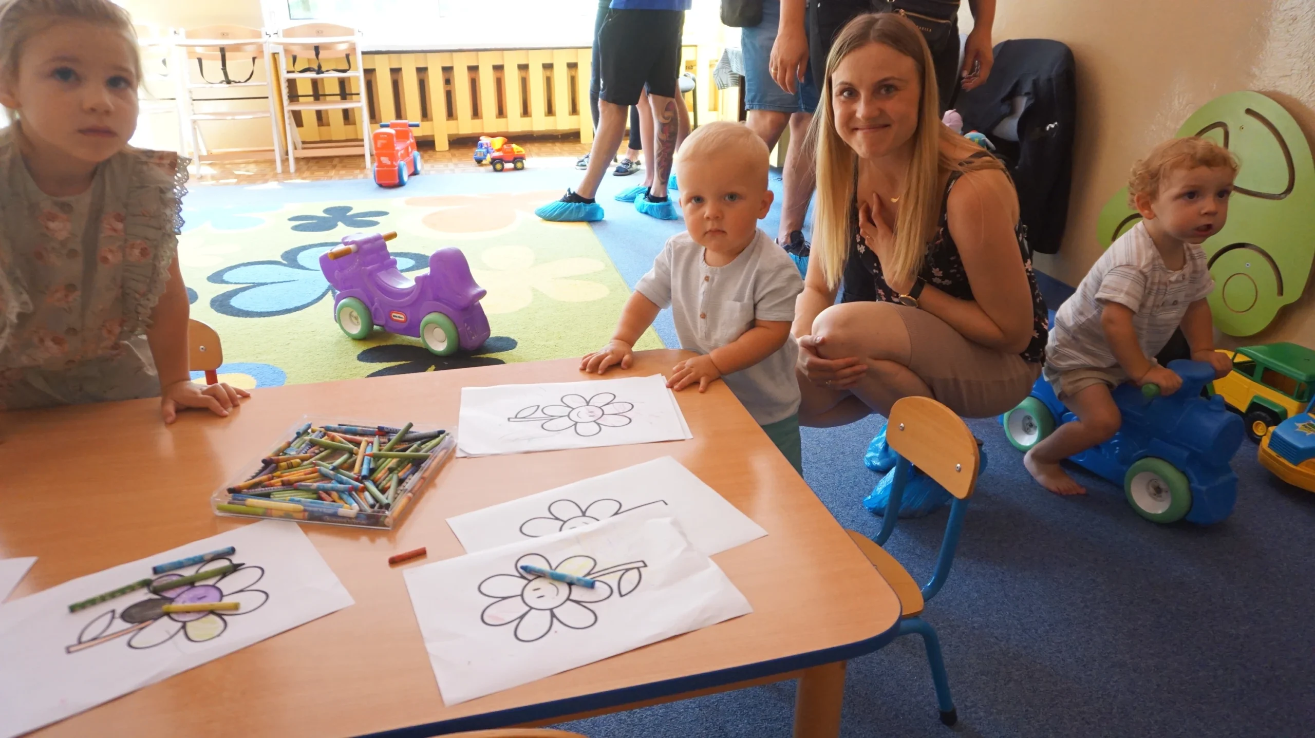 Dzieci mogły pobawić się zabawkami, które były na wyposażeniu żłobka lub podchodząc do stoliczków pooglądać książeczki, czy też rysować kredkami. Pojawiły się też pierwsze zawarte znajomości. Wszystko to odbywało się pod okiem opiekunów i rodziców