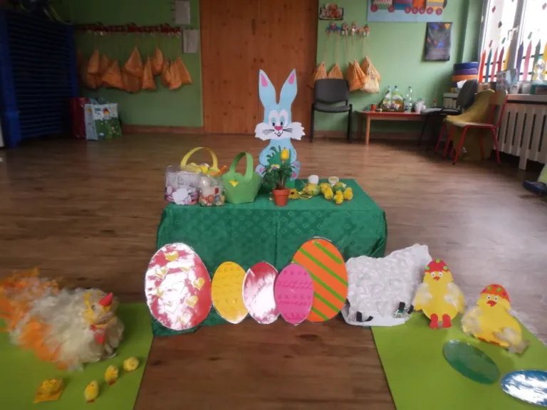 Maluszki z grupy I poznawały symbole Świąt Wielkanocnych. Same, wraz z ciociami przygotowywały dekoracje świąteczne. Kurczaczki, jajka, koszyczki, bazie, kwiatuszki wywołały uśmiech na buźkach dziecięcych. Największą atrakcją był zajączek wielkanocny i przygotowany wspaniały stolik z obłożeniem świątecznym, bowiem Święta tuż, tuż …