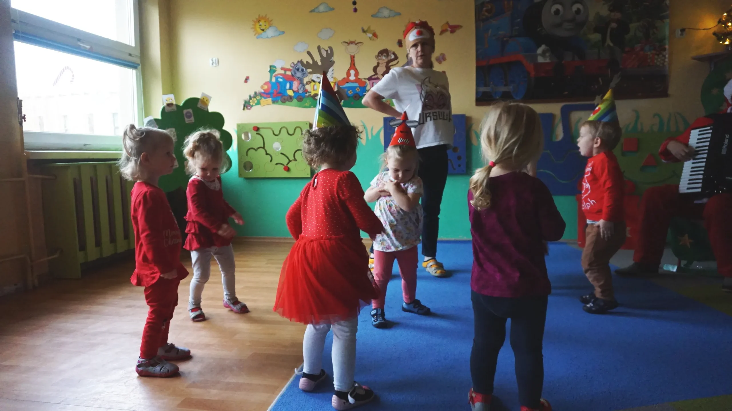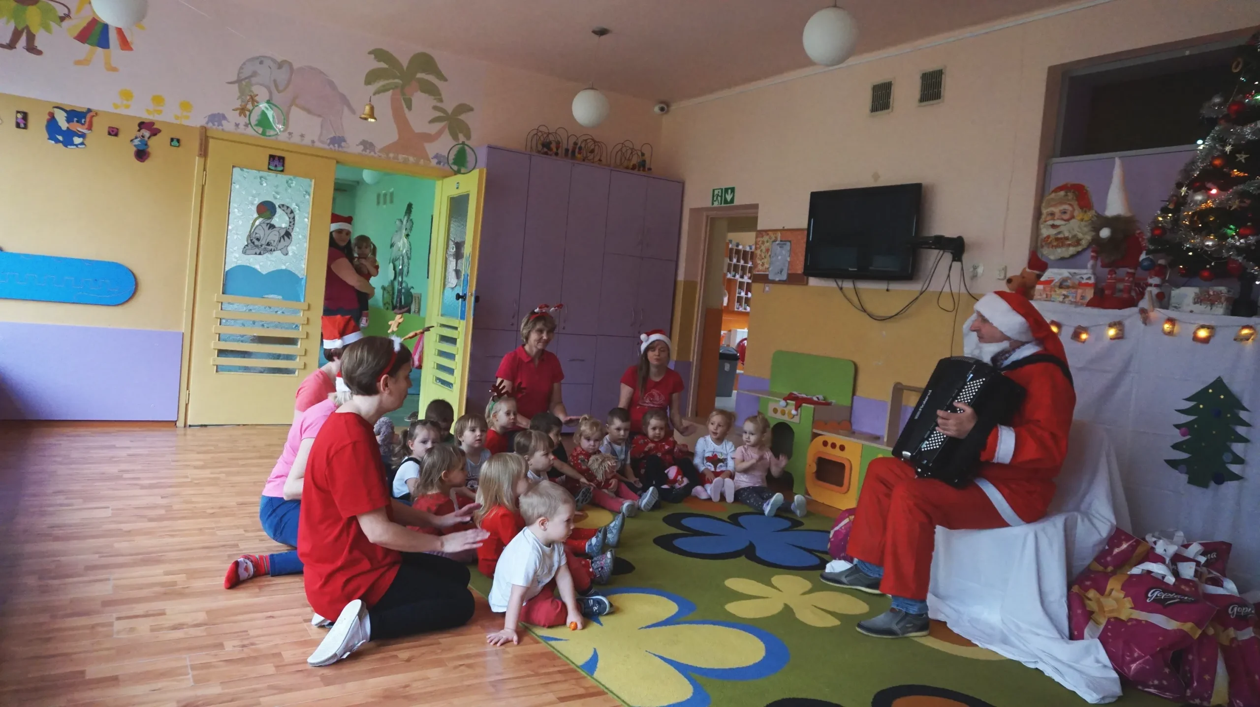 Ten Dzień był bardzo wesoły, dzieci nie bały się Mikołaja, bo dobrze go już znają- to wujek Zdzisław, który prowadzi rytmikę dla dzieci, z różnymi instrumentami.