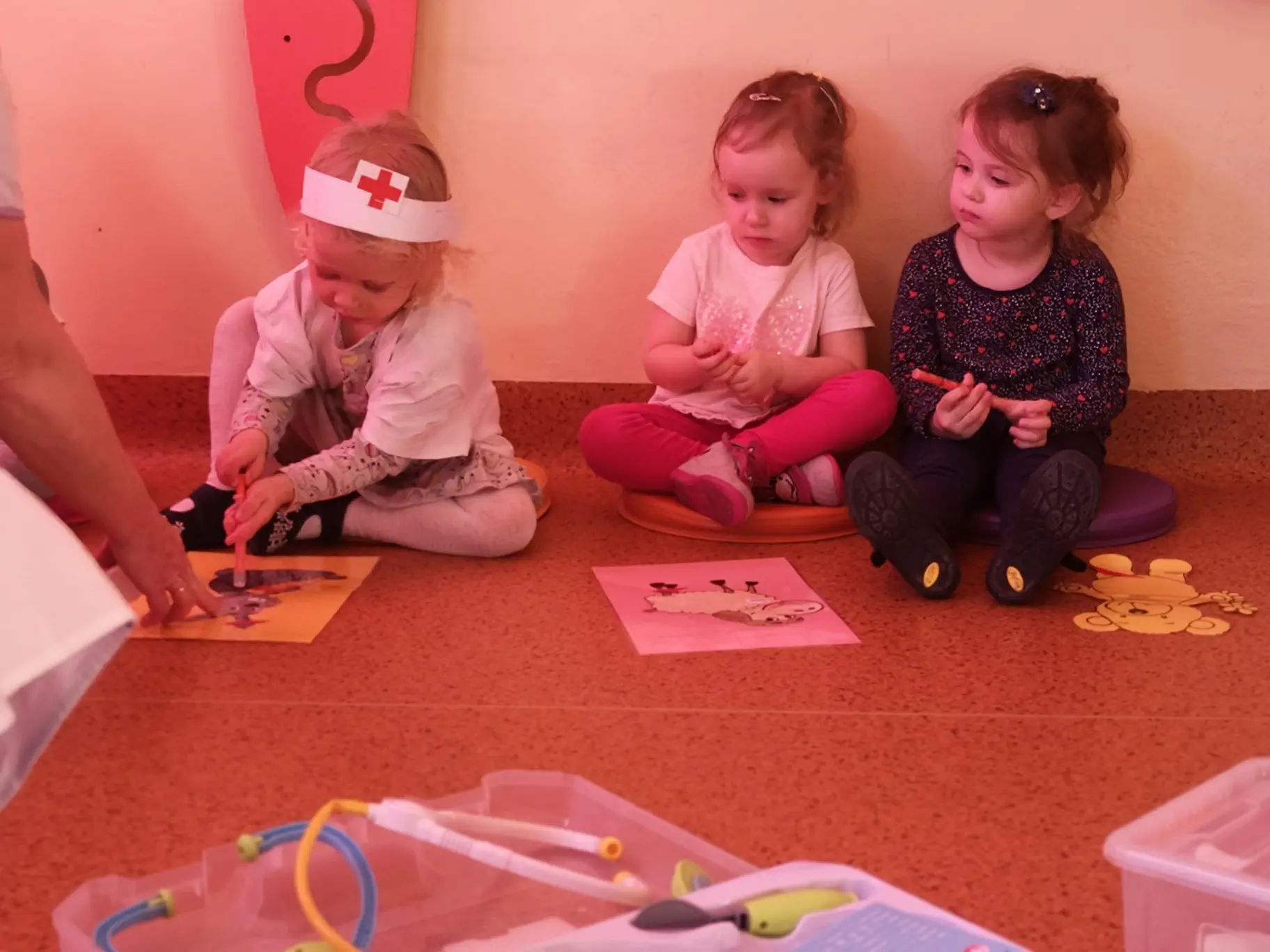St. pielęgniarka przygotowała dla dzieci zajęcia „u weterynarza”. Dzieci wspaniale odnalazły się w tej roli. Każde z nich pragnęło leczyć chore zwierzaczki. Był lekarz weterynarz i pielęgniarka.
