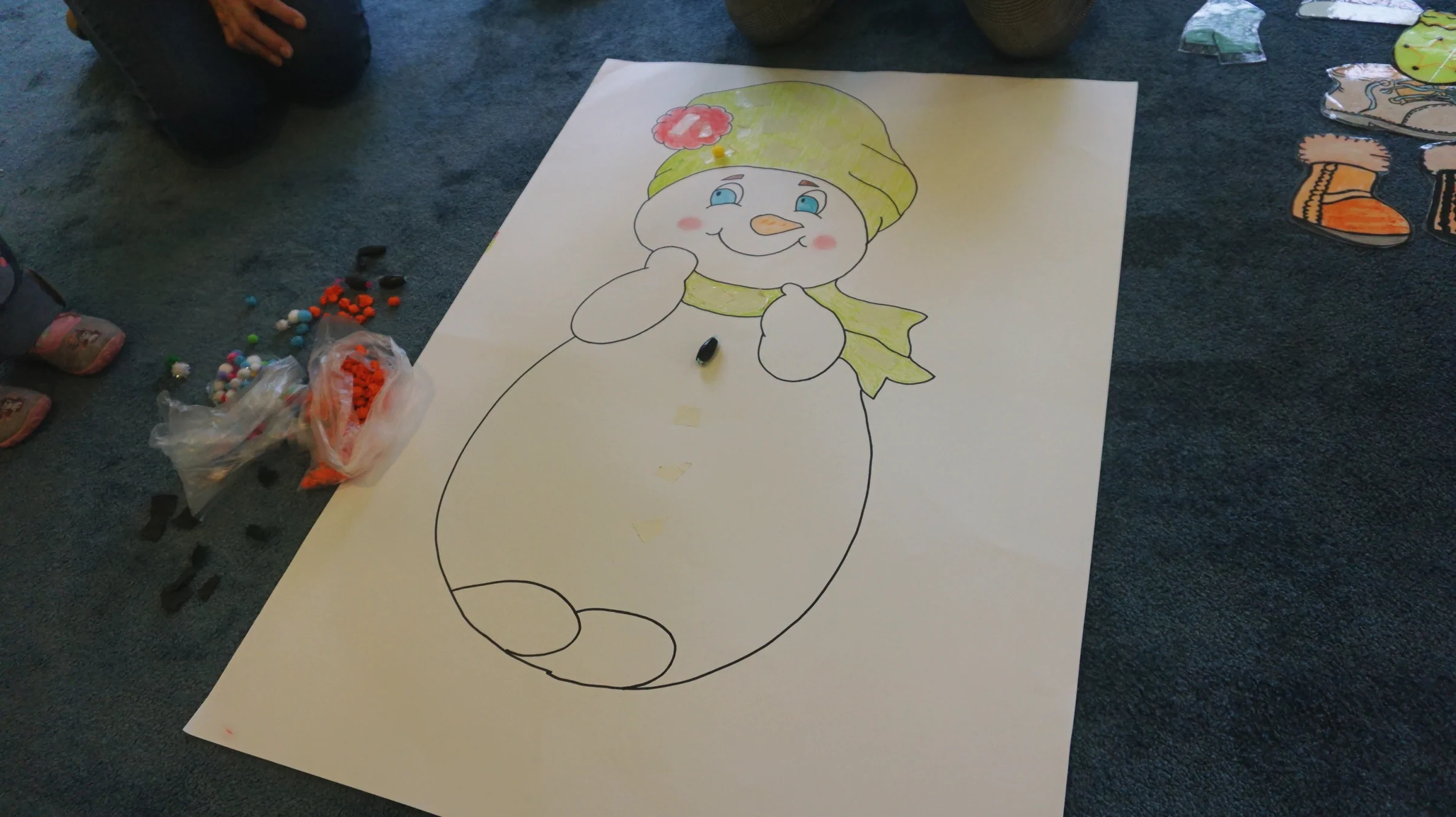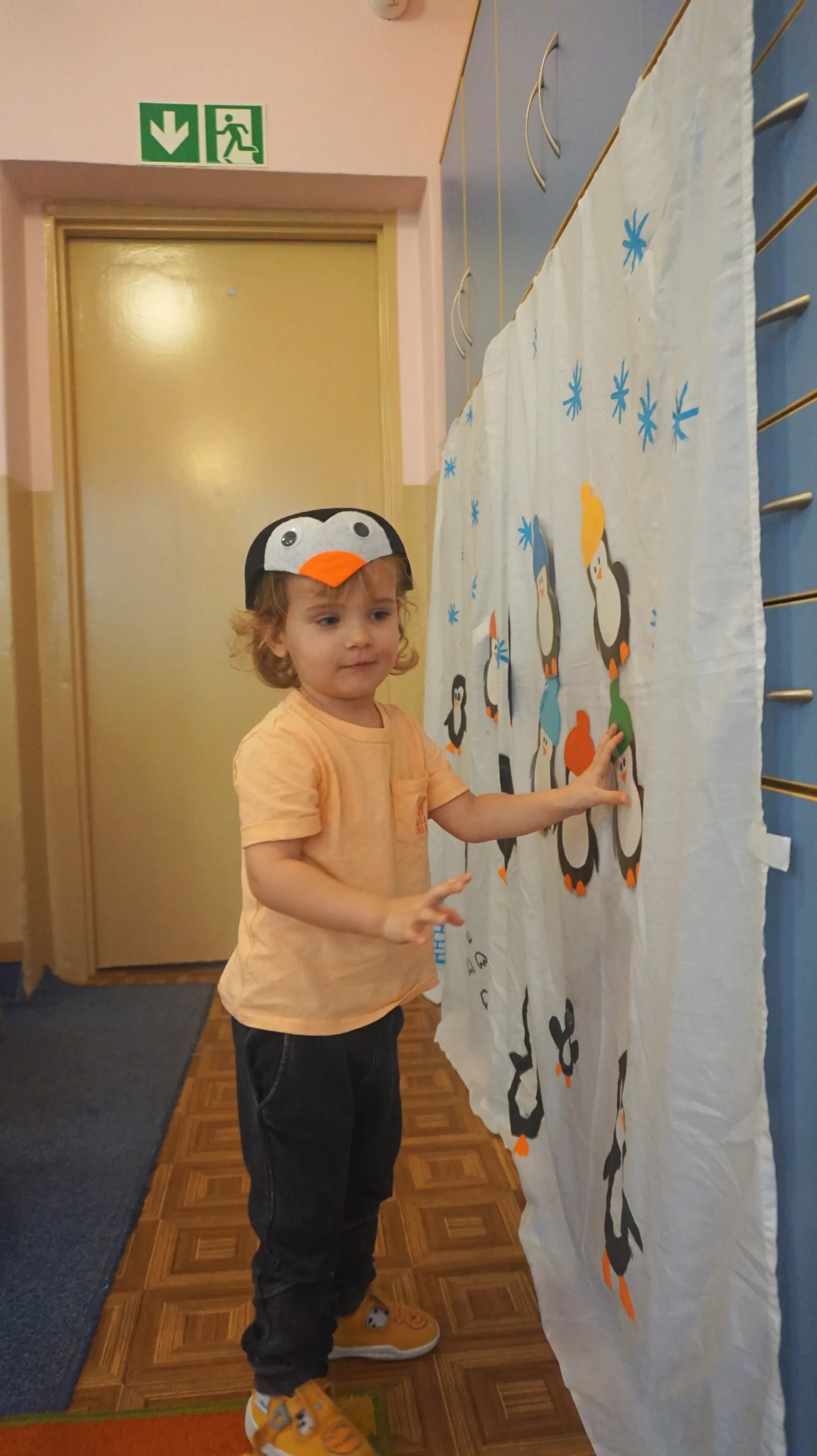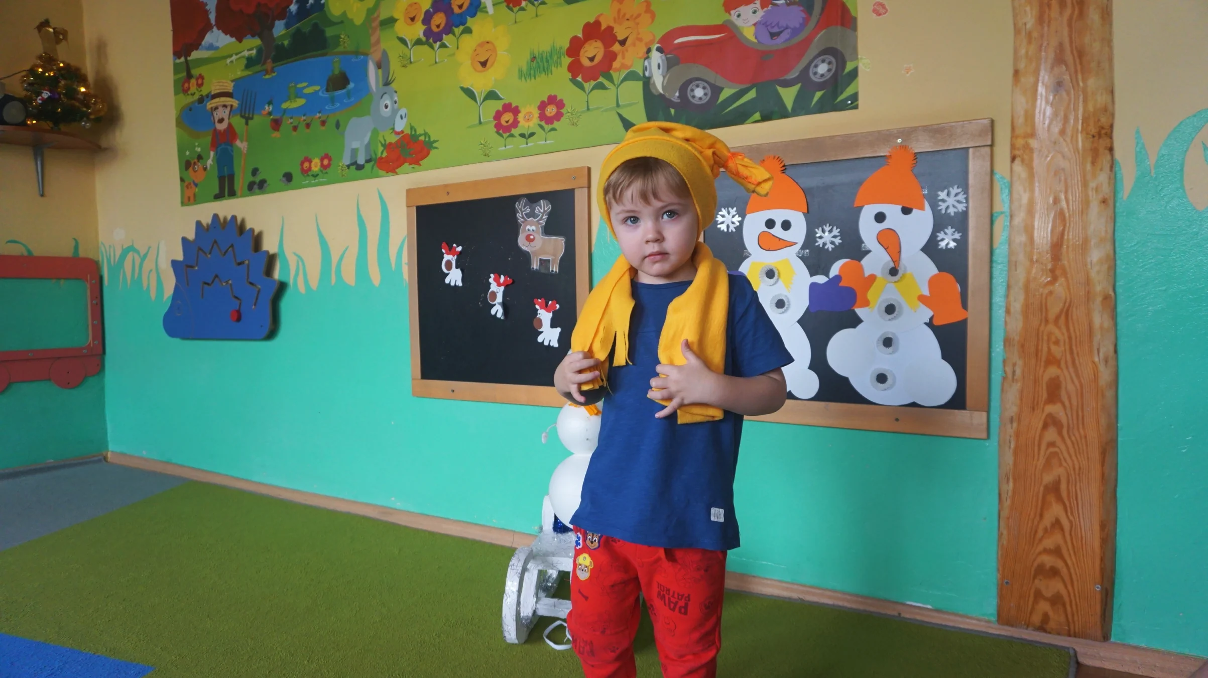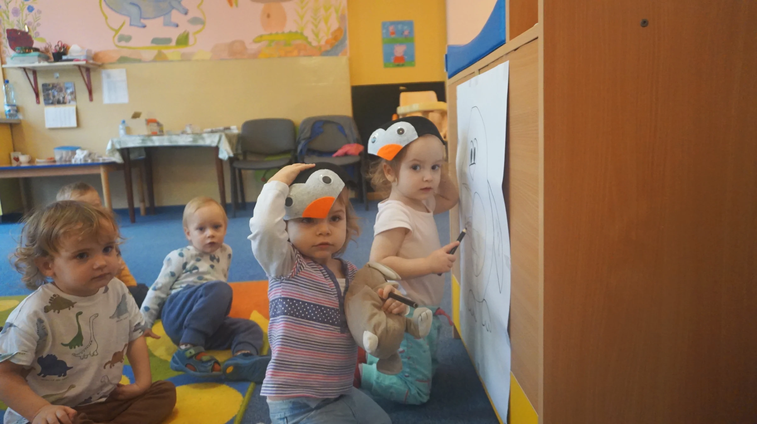 Chociaż niektóre dni nie przypominały zimy, to my w grudniu bawimy się „na zimowo”. Jesteśmy przygotowani do zimy. Dzieci ubrały ciepłe szaliki i czapeczki. Są też zabawy z bałwankiem na brystolu.